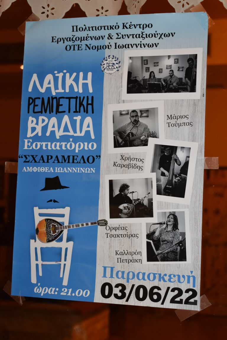 Μουσική βραδιά με λαϊκορεμπέτικη ορχήστρα στο εστιατόριο “Σχαραμέλο”